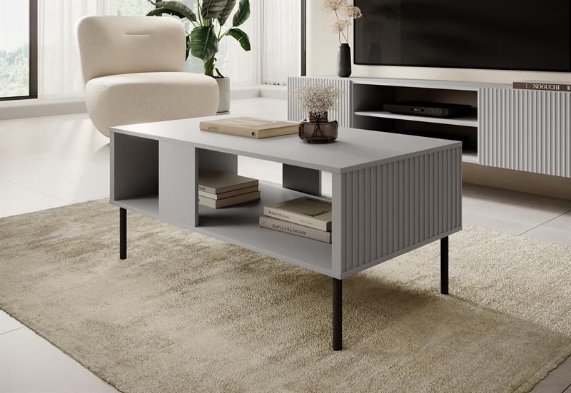 - je moderní konferenční stolek vyrobený z lamina a MDF desek v barevné kombinaci šedé desky stolu a černých nohou. Drážkovaná čela jsou nejnovějším trendem v interiérovém designu, který nábytku dodává charakter a originální vzhled. Drážkování je způsob, jak dodat nábytku jedinečný vzhled.