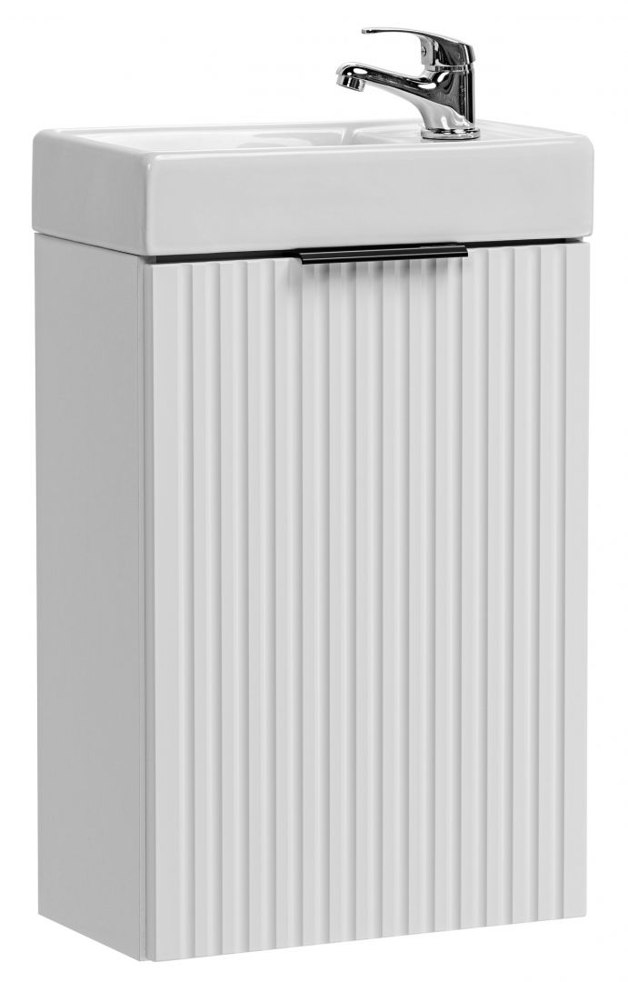 Ve skvělém moderním vzhledu se vyznačuje nejvyšší kvalitou zpracování materiál MDF v provedení Bílá s drážkovanými čely. Skříňky mají tichý uzavírací systém s možností výběru úchytů ve 3 barvách - zlatý lesk, lesklý chrom a černý mat v balení jsou všechny barvy.