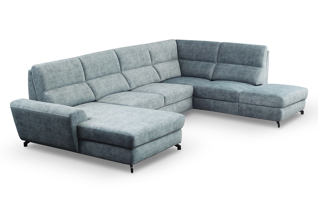 - pohodlná a kvalitní sedací souprava do U s dvěma úložnými prostrory a rozkladem na lůžko 123 x 270 cm. Široký výběr kvalitních potahových látek včetně omyvatelných.