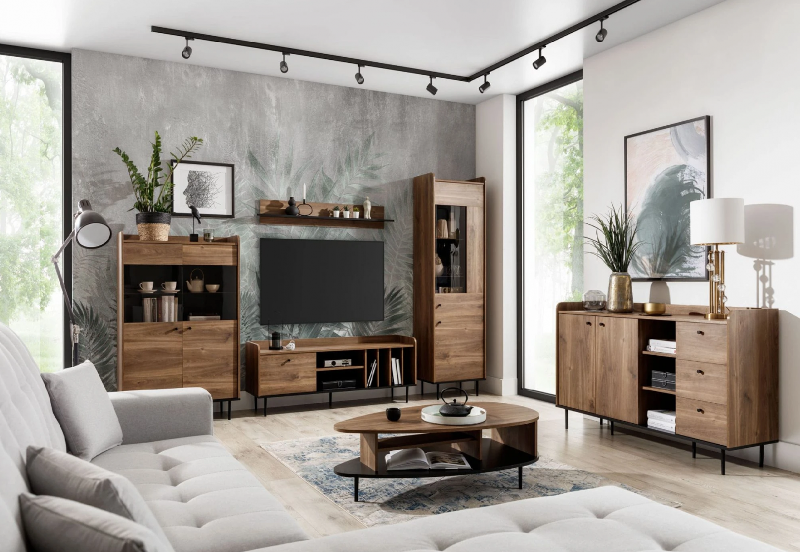 Vyzkoušejte originalitu s precizním řemeslným zpracováním v podobě moderní nábytkové sestavy. Tato sestava s komodou, vitrínami, RTV, konferenčním stolem a nástěnnou policí je díky své prostornosti a množství úložného prostoru praktickým pomocníkem v každé domácnosti. Stylová nábytková sestava dodá vašemu interiéru zajímavý vzhled a zaslouženou pozornost. Díky praktickému úložnému prostoru budete mít vše přehledně uspořádané. Tato nábytková sestava je vyrobena z lamina a poskytuje spolu s kovovými prvky nábytku dostatečnou pevnost a stabilitu. Tento materiál je stálobarevný a odolný vůči mechanickému poškození, což zaručuje dlouhou životnost nábytku. Nábytková sestava je dostupná v oblíbeném barevném dekoru Brandy Castello.