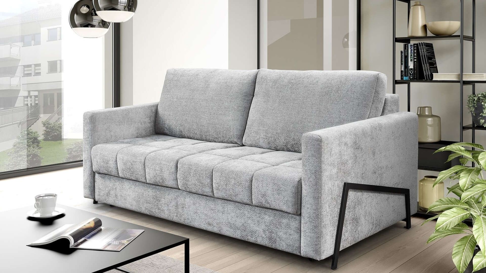 - moderní rozkládací pohovka na trvalé spaní s matrací PUR pěna T-30 výška 12 cm a nebo s matrací z HR pěny výška 14 cm o rozměru 120 x 193 cm. Jednoduchá a rychlá manipulace rozkladu. Na výběr máte ze dvou tipů područek. Pohovka je určená na každodenní spaní.