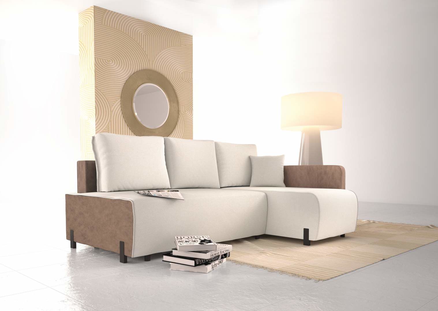 - moderní pohodlná sedací souprava na kovových nohách s USB portem, úložným prostorem a rozkladem na lůžko 140 x 196 cm. Jednoduchá a elegantní sedací souprava menších rozměrů.