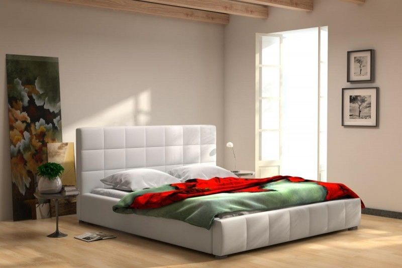 Manželská postel CHESTER - je vyrobená z lamina a eko kůže a dostupná v bílé barvě pro lůžko 140, 160, 180 x 200 cm. Součástí postele je úložný prostor a lamelový rošt.