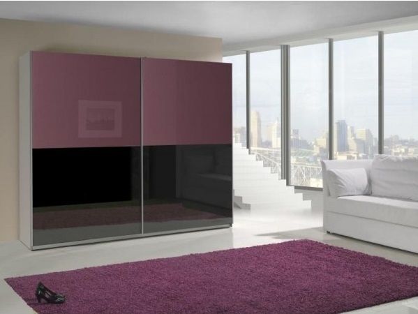 ŠATNÍ SKŘÍŇ LUX XI. je vyrobená z lamina tl. 16 mm s ABS hranou v barevné kombinaci: bílý korpus, dveře s černým a fialovým leskem. Posuvné dveře s kvalitním Hettich kováním.