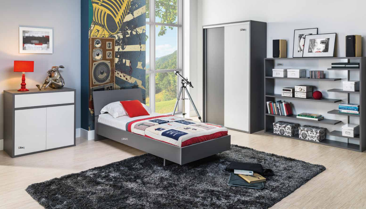 V každém dětském nebo studentském pokoji nesmí chybět dostatek místa pro uložení drobností, knížek, hraček a sportovních trofejí. Moderní sestava do studentského nebo dětského pokoje ze série ZOONDA. Tento stylový nábytek je vyroben z kvalitní laminované dřevotřísky s odolnou ABS hranou. Tento materiál zajistí optimální nosnost a stabilitu, je stálobarevný, snadno se čistí a je nenáročný na povrchovou údržbu. Díky výběru barevných variant je tento studentský nábytek vhodný pro dívky i chlapce a decentní barevné provedení je vhodné pro všechny věkové skupiny. Tento moderní studentský pokoj je možné zakoupit jako komplet, ale také samostatně jednotlivé komponenty variabilní nábytkové sestavy ZOONDA.