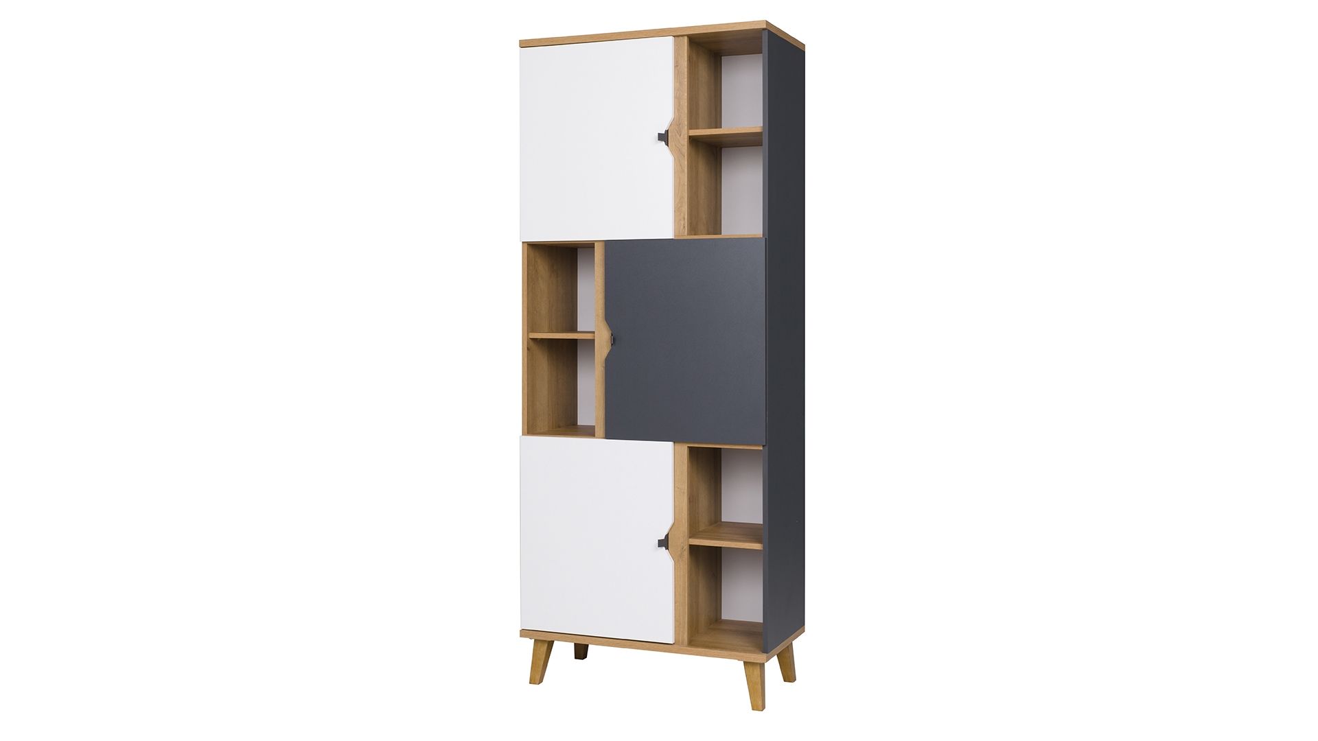 Regál MAMONE - je moderní vitrína vyrobena z kvalitního lamina s ABS hranou v dekoru dub zlatý / graphite, bílá.