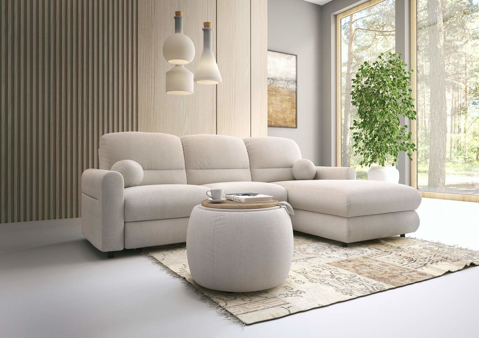 Rohová sedací souprava FJORD je zajímavý, moderní a vysoce kvalitně zpracovaný nábytek, který zaujme svým jedinečným designem. Má krásné provedení a je ideální na vytvoření spokojeného a stylového interiéru. Majitelé těchto sedaček u nich ocení zejména jejich výbornou kvalitní povrchovou úpravu a velké pohodlí při posezení, jelikož její výplň je vysoce kvalitní PUR pěna a tím je zajištěna vysoká životnost sedací soupravy společně s pružinami Falliste. Boční opěrky umožňují pohodlné podložení rukou či hlavy. Kostra je vyrobena z měkkého a tvrdého dřeva. Sedačka je celo čalouněná, přičemž k ní náleží velký výběr potahových látek. Vybranou potahovou látku uveďte při objednávce do poznámky, popřípadě nás kontaktujte. Provedení opěráku sedací soupravy je vysoké, čímž je zaručeno pohodlné sezení. Sedačka je s funkcí rozkladu na velikost spací plochy 123 x 210 cm. Sedací souprava má úložný prostor.
