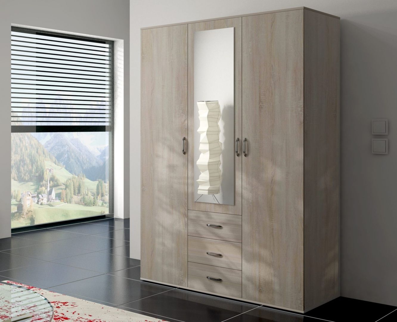 Šatní skříň OSIRIS 150 má neotřelý design, kvalitní povrchovou úpravu a je vhodná jak do ložnice, dětského nebo studentského pokoje. Šatní skříň je vyrobena z lamina tloušťky 16 mm s ABS hranou. Prostřední část skříně je opatřena dveřmi se zrcadlem a pod kterým jsou umístěny tři zásuvky na drobnosti a doplňky. Skříň disponuje velkým množstvím úložného prostoru. Díky úsporným rozměrům je vhodná i do menších interiéru. Vnitřní vybavení, police a šatní tyč je v ceně.