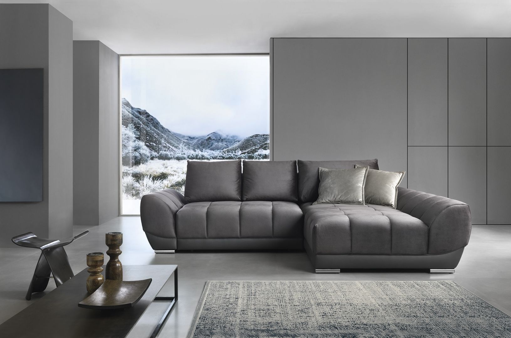pohodlná polštářová sedací souprava s úložným prostorem a rozkladem na lůžko 136 x 219 cm. Velký výběr potahových látek včetně omyvatelných.