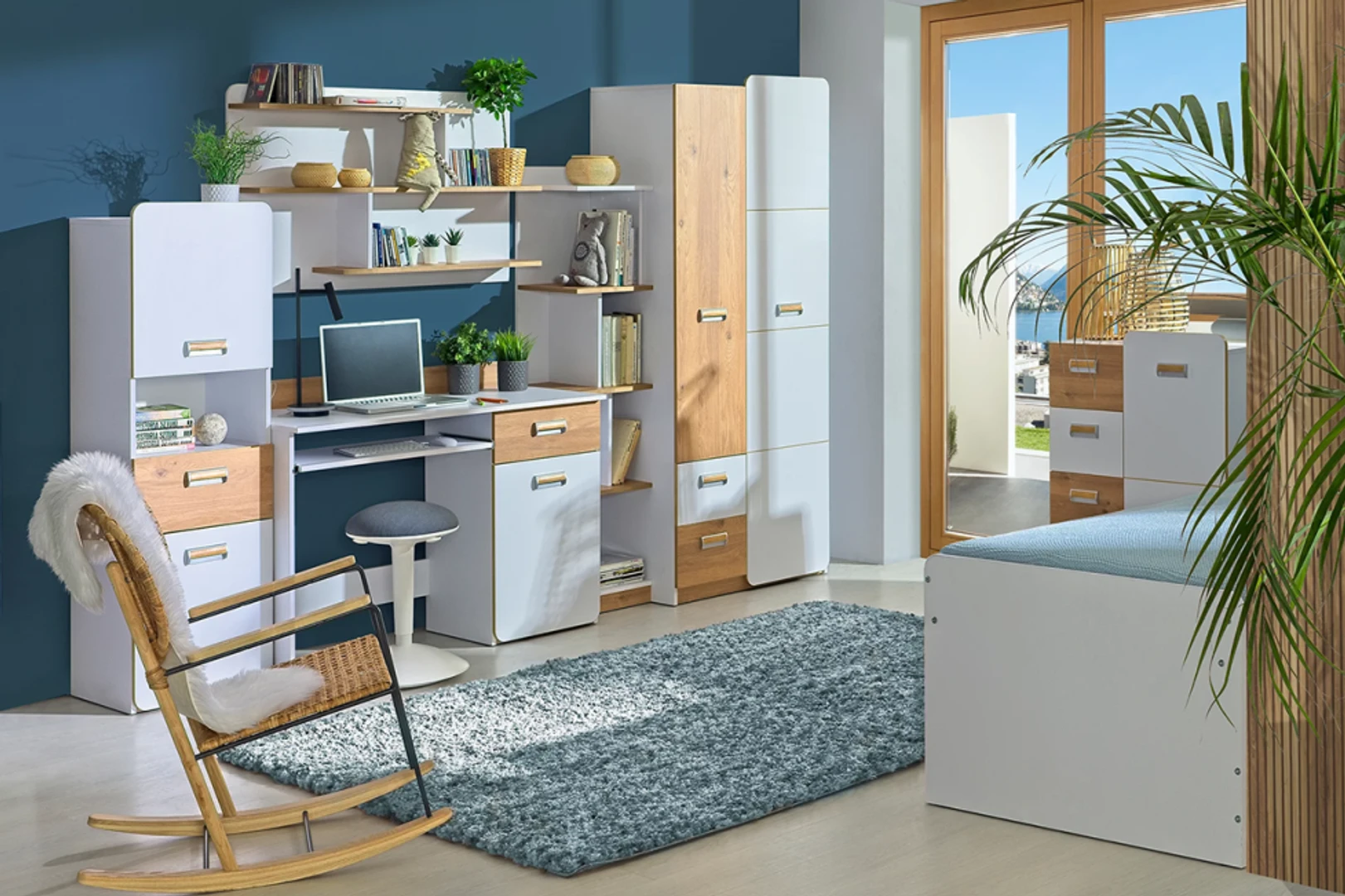 V každém dětském nebo studentském pokoji nesmí chybět dostatek místa pro uložení drobností, knížek, hraček a sportovních trofejí. Moderní sestava do studentského nebo dětského pokoje ze série LORENTO. Tento stylový nábytek je vyroben z kvalitní laminované dřevotřísky s odolnou ABS hranou. Tento materiál zajistí optimální nosnost a stabilitu, je stálobarevný, snadno se čistí a je nenáročný na povrchovou údržbu. Díky výběru barevných variant je tento studentský nábytek vhodný pro dívky i chlapce a decentní barevné provedení. Tento krásný studentský pokoj je možné zakoupit jako komplet, ale také samostatně jednotlivé komponenty této variabilní nábytkové sestavy.