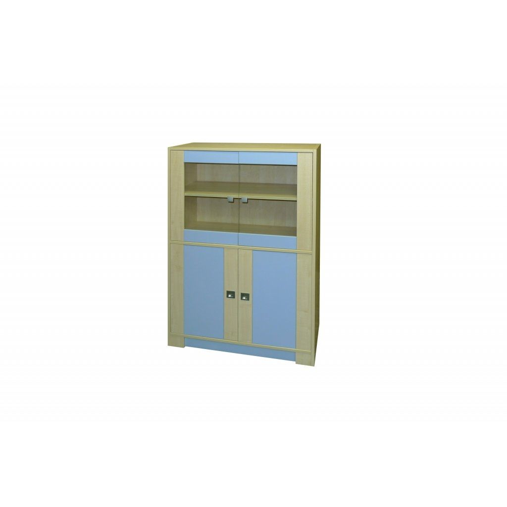 V dětském pokoji nesmí chybět dostatek úložného prostoru pro oblečení a hračky pro vaše dítě. K tomu účelu poslouží kvalitní skříňka vyrobena ze zdravotně nezávadného lamina s ABS hranou. Prostorná skříňka do dětského pokoje je ze série BOŘEK. Tato skříňka do dětského pokoje je prosklenná ve vchní části, je opatřena bezpečnostním prvkem ve formě ABS hran tl. 2 mm. Tento moderní dětský nábytek je vyroben z kvalitní zdravotně nezávadné laminované dřevotřísky tloušťky 18 mm, která zajistí optimální nosnost a stabilitu. Tento materiál je stálobarevný, snadno se čistí a je nenáročný na povrchovou údržbu. Díky výběru barevných variant je skříňka vhodná pro dívky i chlapce a decentní barevné provedení je vhodné do každého dětského pokoje. Praktickou skříňku s policemi lze objednat samostatně nebo jako součást dětského nábytku BOŘEK.