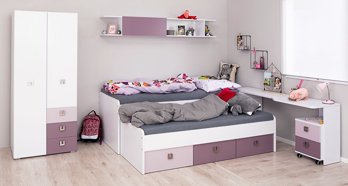 Díky výběru barevných variant je tento nábytek vhodný pro dívky i chlapce a decentní barevné provedení je vhodné pro všechny věkové skupiny. Rozkládací postel je možná v devíti barevných provedeních, přídavné lůžko k posteli je schované pod hlavním lůžkem postele, výsuvné lůžko jednoduše vysunete a umístíte kam potřebujete, pomocí koleček to jde velmi snadno. Postel je určena pro rozměr matrace 200 x 90 cm. Spodní výsuvné lůžko ve velikosti 80 x 195 cm. Ve variantách produktu je možnost objednat si postel včetně dvou kvalitních pěnových matrací se snímatelným potahem.