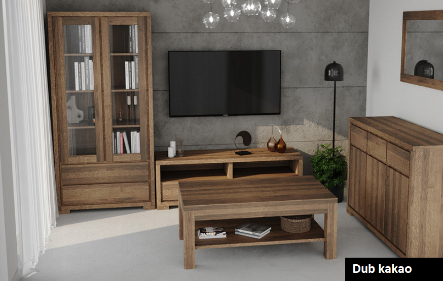 Vitrínaa z masivu dubu je určena pro milovníky přírodních materiálů, především kvůli svému jednoduchému elegantnímu designu. Vyrábí se z kvalitního precizně zpracovaného masivu dubu. Barvu masivního dubu je přírodní nebo několika krásných barevných odstínech. Vitrína má příjemně zaoblené hrany a tvoří dokonalý dojem s nábytkem z masivního dubu. Minimalistický design vitríny a důmyslné umístění šuplíku, plných dvířek a prosklených částí poskytne dostatek úložného prostoru na vaše oblíbené předměty.