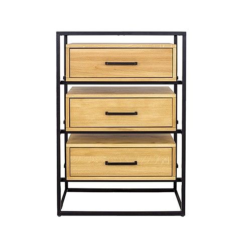 Komoda KD370 dub je minimalistická komoda v kombinaci kovu a masivu dubu v několika moderních barevných odstínech dřeva. Vnitřní vybavení tvoří 3 šuplíků.
