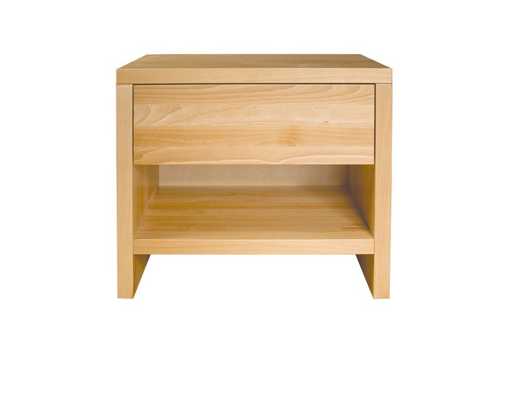 Noční stolek z masivu je určen pro milovníky přírodních materiálů, především kvůli svému jednoduchému elegantnímu designu. Vyrábí se z kvalitního precizně zpracovaného masivu buku. Barvu masivního buku je přírodní nebo několika krásných barevných odstínech. Noční stolek má zaoblené hrany a tvoří dokonalý dojem s některou z manželských postelí LK. Minimalistický design nočního stolku je vhodný do každého interiéru.