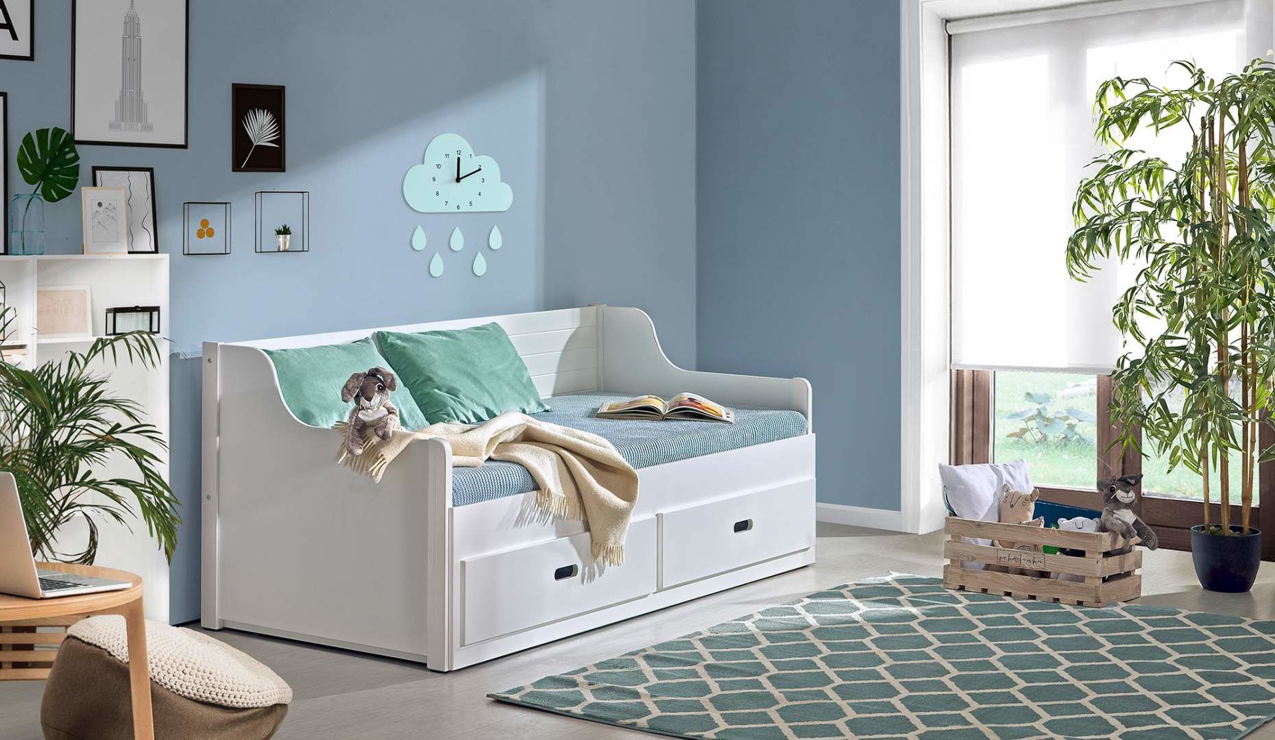 V studentském pokoji nesmí chybět dostatek místa pro spánek a odpočinek. K tomu účelu poslouží kvalitní postel s úložným prostorem a přistýlkou vyrobena z kvalitního výběrového masivu borovice. Tato postel do studentského nebo dětského pokoje se jmenuje SIMON. Tento stylový nábytek je vyroben z kvalitního masivu se zdravotně nezávadnou povrchovou úpravou, masiv zajistí optimální nosnost a stabilitu. Masivní nábytek se nadno čistí a je nenáročný na povrchovou údržbu. Díky výběru barevných variant je tento stylový nábytek vhodný pro dívky i chlapce a decentní barevné provedení je vhodné pro všechny věkové skupiny. Jednoduchý a svěží design tohoto dětského nábytku oživý každý dětský a studentský pokoj.