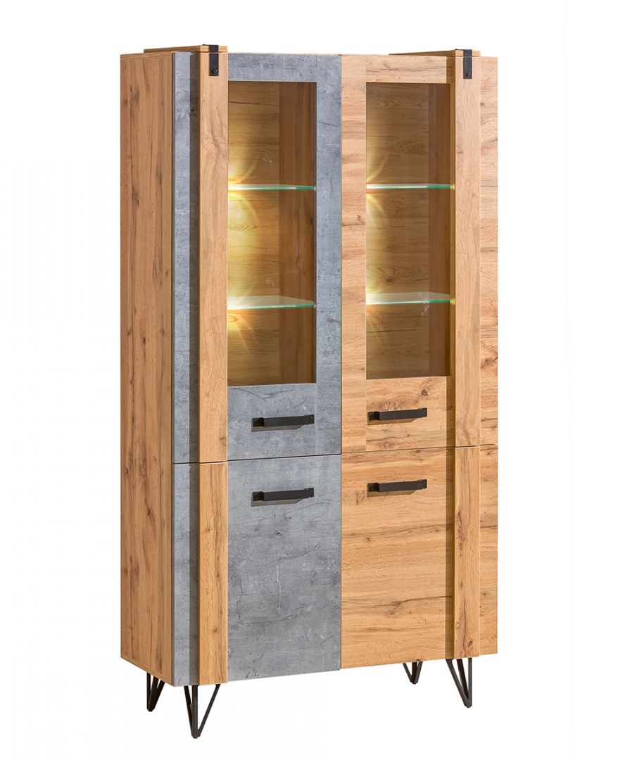 Vitrína LOFTER 3 - je moderní vitrína vyrobena z kvalitního lamina v dekoru dub wotan / beton milenium.