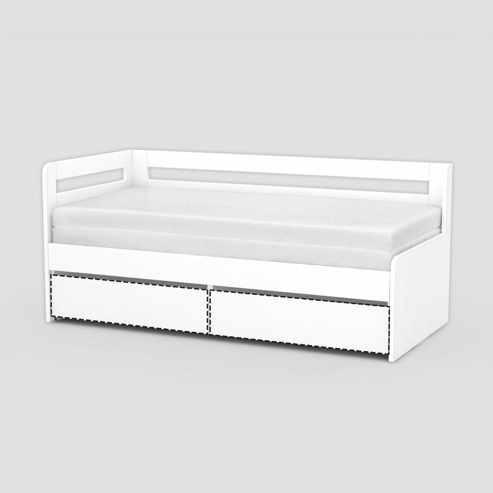 Moderní postel do dětského pokoje je vyráběna z kvalitní laminované dřevotřískové desky. A protože bezpečnost dětí je pro nás prioritou, tak postel má na okrajích zaoblené čela bez ostrých hran, které jsou spojeny pevnou bočnicí . Pod lůžkem na spaní se nachází praktická zásuvka s úložným prostorem například na dětské hračky nebo peřiny, které prostě vysunete díky kolečkům na spodní straně. Postel je určena pro rozměr matrace 200 x 90 cm po rozložení 179 x 200 x 12 cm v jedné výšce.