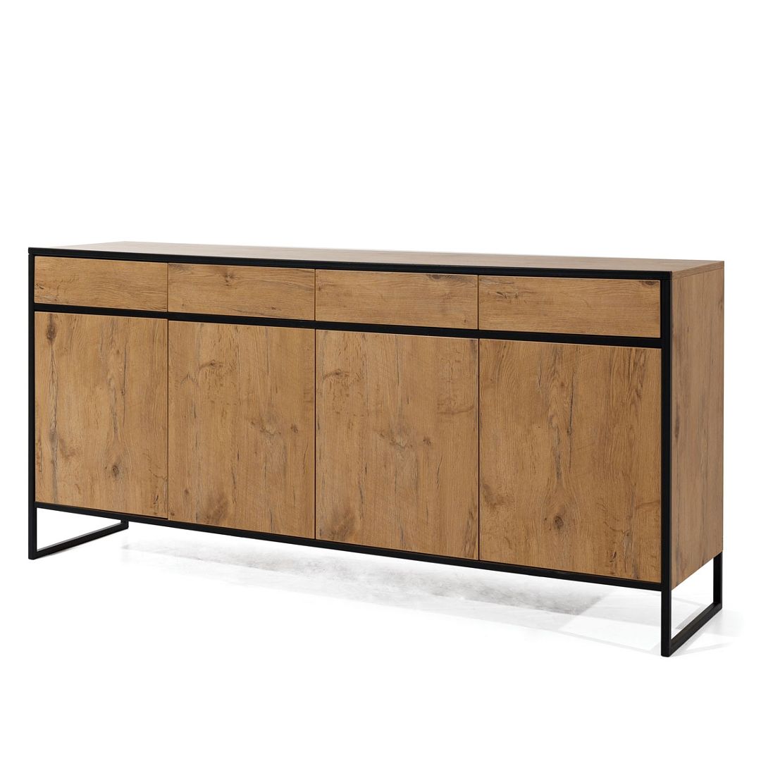 Komoda LOOFT LFKO 4D4S - je elegantní komoda vyrobena v barevném provedení dub Lancelot v kombinaci s černým kovovým rámem v industriálním stylu.