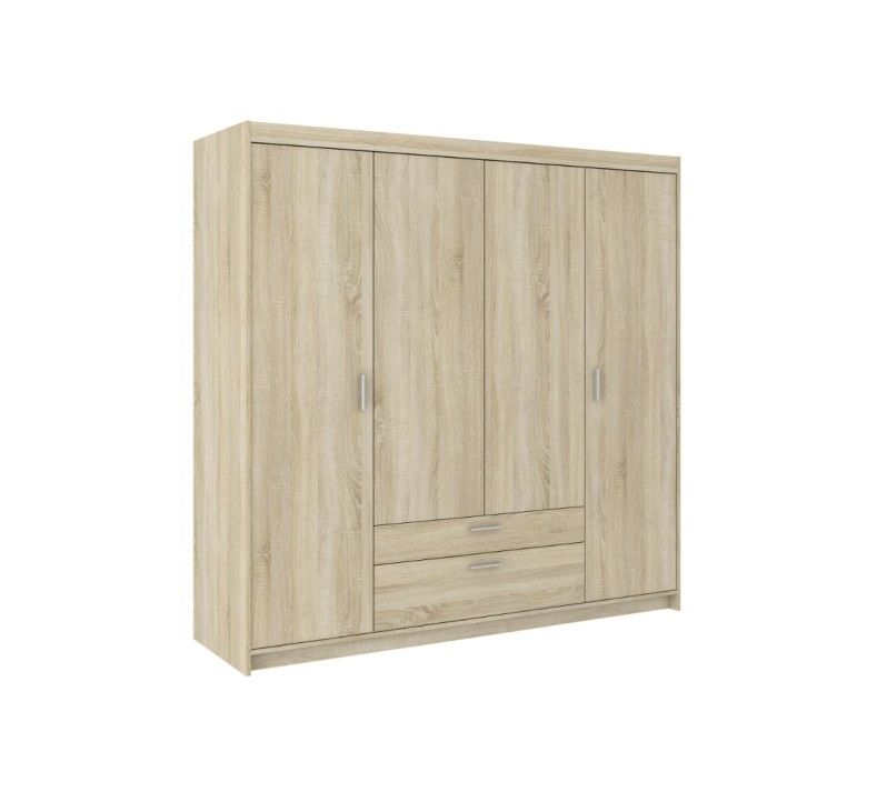 Šatní skříně ELENNA jsou výborně zpracované a jednoduché čtyřdveřové šatní skříně s šatní tyčí na přes dvoje dveře, s poličkami a praktickými šuplíky ve středové části. Své příznivce si najdou především pro svůj moderní a atraktivní design do každého moderního interiéru. Vyrábí se z praktického středně silného lamina tloušťky 16 mm, jež je jednak odolné proti vlhkosti i chemikáliím a jednak umožňuje značnou úsporu finanční, oproti klasickému masivu. Skříně mají navíc i praktické ABS hrany, u kterých nehrozí uštípnutí ani jiné mechanické poškození. Díky své velké váze je tato šatní skříň velice stabilní. Krásný design těchto skříní také podtrhují provedení v barvách Bílá, Dub Sonoma nebo Dub Lefkas a drží tak krok s nejmodernějšími designy v nábytkářském průmyslu. Vhodné jsou především do předsíní či ložnic.